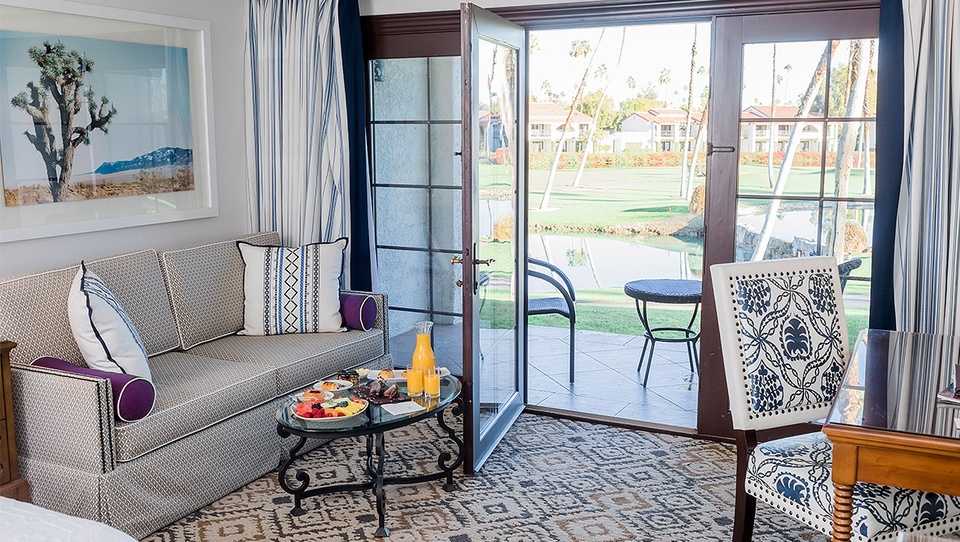 Spacious and quiet, Rancho Las Palmas Resort & Spa rooms surround you in Spanish Colonial-inspired style and a soothing desert palette of beige, sand, and ivory. French doors lead to your private patio or balcony where you can enjoy the desert air and splendid views.